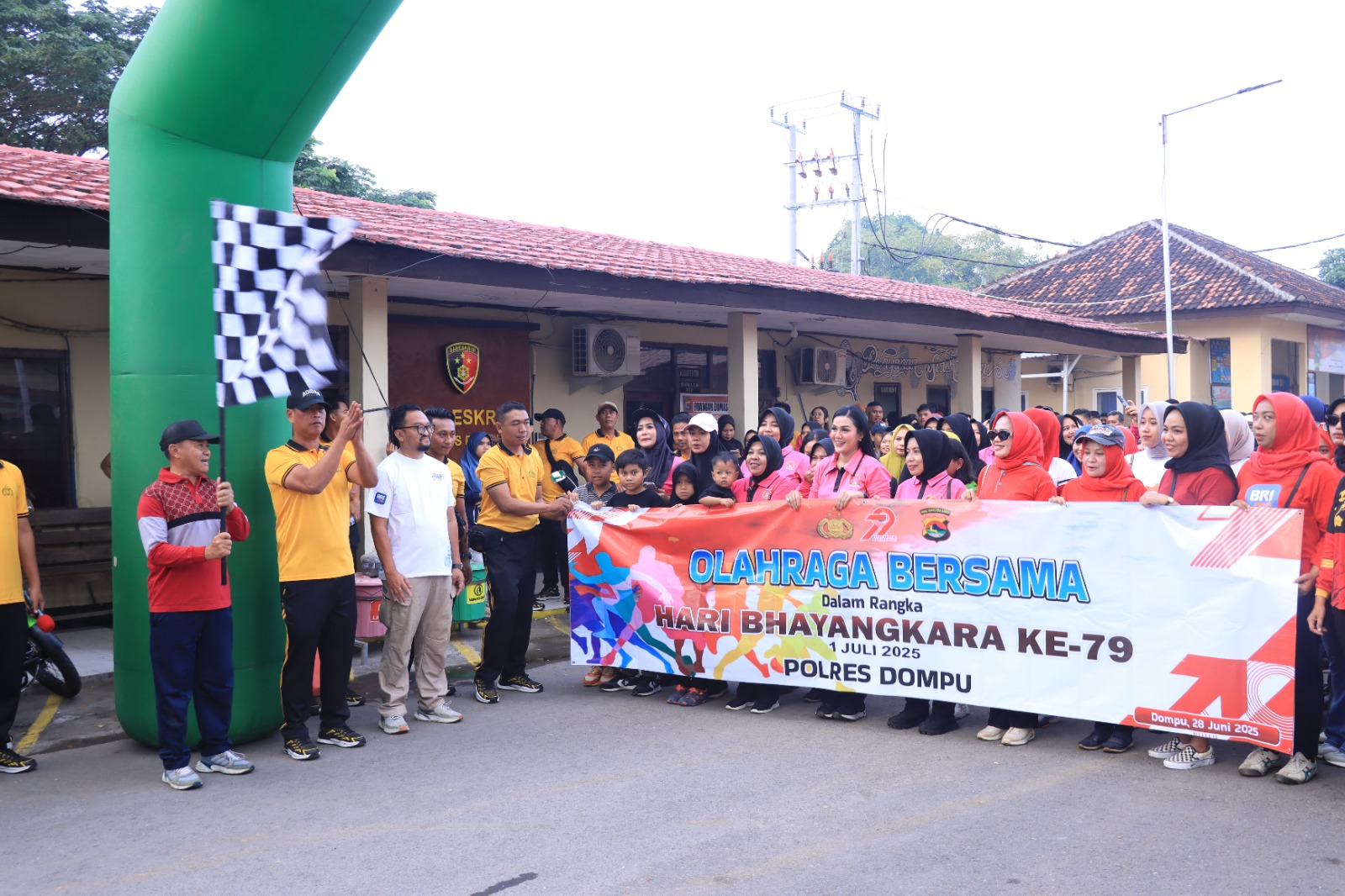 Dalam rangka menyemarakkan Hari Bhayangkara ke-79 Tahun 2025, Polres Dompu menggelar kegiatan olahraga bersama yang berlangsung meriah pada Sabtu, 28 Juni 2025, bertempat di Lapangan Sepak Bola Mapolres Dompu.