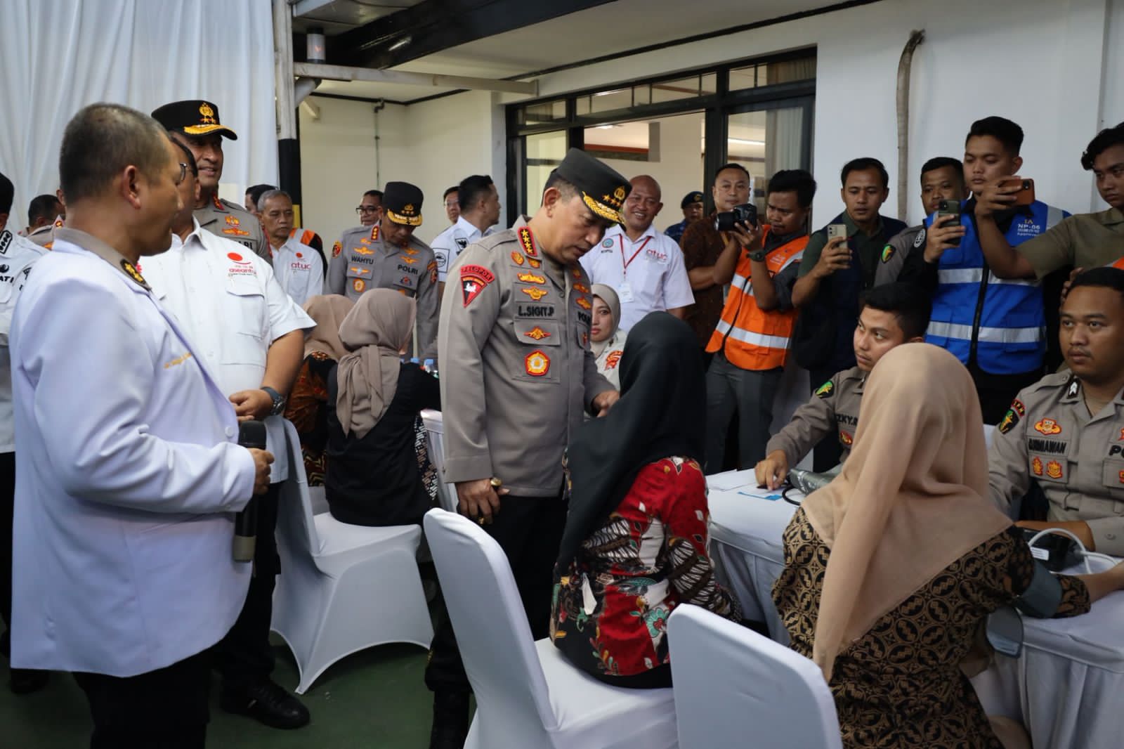 “Tenaga kesehatan yang kami terjunkan sebanyak 53 orang, terdiri atas dokter umum, dokter spesialis, perawat, dan bidan. Untuk kegiatan donor darah akan diikuti oleh 300 orang, sementara pemeriksaan kesehatan umum gratis diikuti oleh 500 orang. Kami juga menyediakan pemeriksaan laboratorium sederhana untuk 500 peserta, pemberian kacamata gratis sebanyak 500 buah, serta vaksinasi influenza untuk 50 orang. Selain itu, kami membagikan 1.500 paket vitamin dan obat-obatan gratis untuk meningkatkan imunitas masyarakat. Santunan untuk anak-anak yatim berupa tas sekolah, alat tulis, dan uang tunai,” jelas Kapolri.