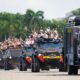 Di barisan akhir, ada kelompok petani ikut dalam defile hari ini. Mereka membawa jagung di tangannya sebagai bukti ketahanan pangan yang sudah dihadirkan.