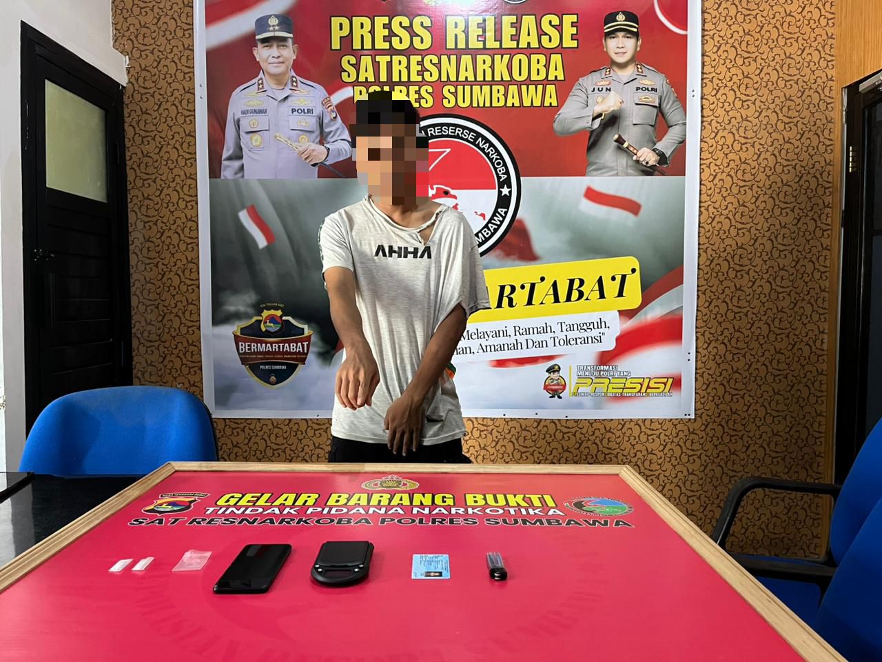 Sumbawa Besar–NTB, Satuan Reserse Narkoba (Satresnarkoba) Polres Sumbawa berhasil mengungkap kasus peredaran narkotika jenis sabu di wilayah Kelurahan Brang Biji, Kecamatan Sumbawa. Seorang pria berinisial H alias W (27 tahun) ditangkap di Jalan Raya Tanjung Menangis V pada hari Minggu (06/07/2025) sekitar pukul 11.20 Wita.