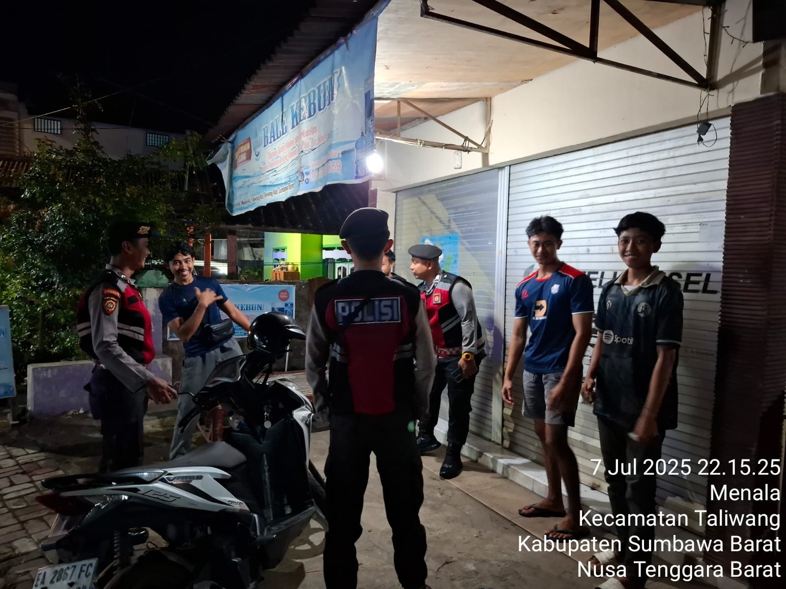 Sumbawa Barat NTB – Dalam rangka menciptakan situasi kamtibmas yang aman dan kondusif, Sat Samapta Polres Sumbawa Barat melaksanakan kegiatan patroli dialogis pada Senin malam, 7 Juli 2025. Patroli yang dilaksanakan mulai pukul 22.00 WITA hingga 23.00 WITA ini menyasar kelompok remaja yang sedang berkumpul di wilayah Kelurahan Menala, Kecamatan Taliwang, Kabupaten Sumbawa Barat.