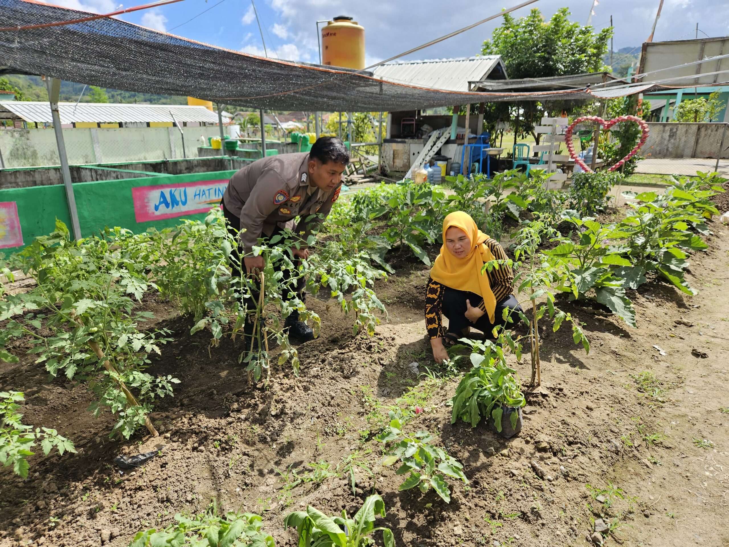 Kegiatan yang menyasar langsung warga pengelola Pekarangan Pangan Bergizi ini bertujuan untuk memberikan dukungan dan motivasi kepada masyarakat agar terus memanfaatkan lahan pekarangan rumah untuk menanam berbagai jenis sayur dan buah-buahan. Dalam kesempatan tersebut, Bhabinkamtibmas melakukan pengecekan langsung terhadap lahan milik salah satu warga binaan yang telah menanam berbagai tanaman seperti terong, cabai, dan melon.