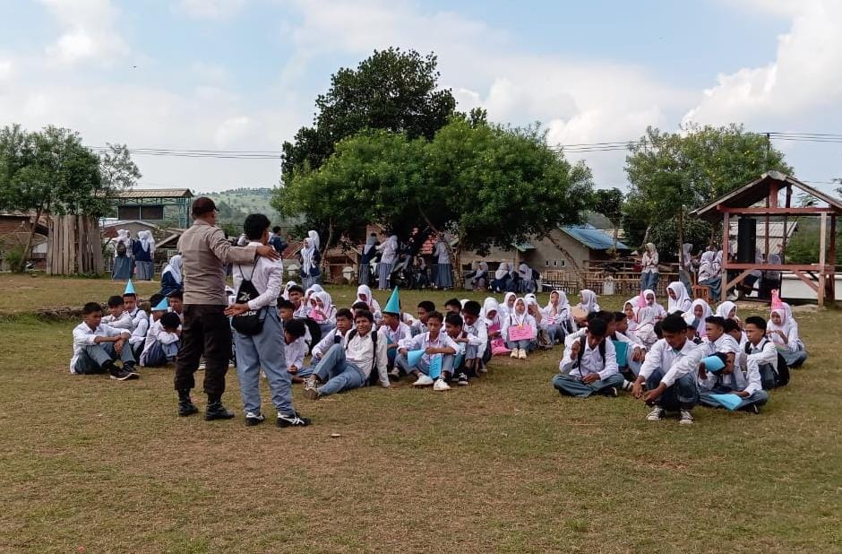 Personel Polsek Parado Polres Bima Polda NTB jadi Pemateri pencegahan kekerasan, kenalan remaja, judi online dan bahaya laten narkoba di kalangan pelajar.