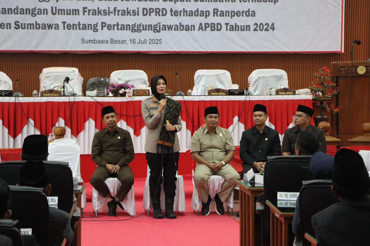 Usai kegiatan, Kapolres Sumbawa AKBP Marieta Dwi Ardhini, S.H., S.I.K. menyampaikan bahwa pihak Kepolisian terus mendukung jalannya roda pemerintahan yang transparan dan akuntabel. Beliau juga menekankan pentingnya sinergi antara Forkopimda dan DPRD dalam menjaga stabilitas keamanan serta mendukung kelancaran program-program pembangunan daerah. “Polres Sumbawa siap mendukung seluruh agenda Pemerintah Daerah, termasuk menjaga ketertiban dan keamanan selama proses pelaksanaan APBD dan program-program strategis daerah,” ungkap Kapolres.
