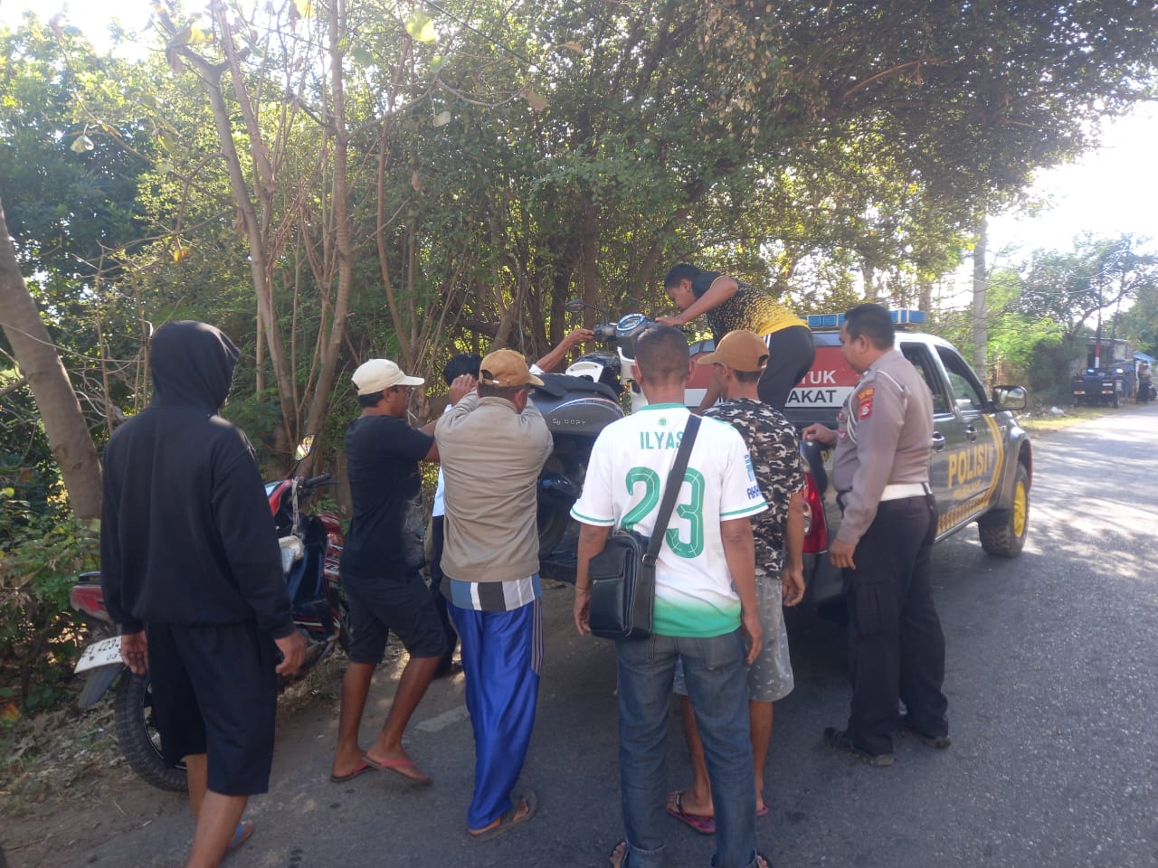 Bima, NTB (19 Juli 2025) – Personel Polsek Sape Polres Bima Kota merespons cepat kejadian kecelakaan lalu lintas antara sepeda motor dan mobil pick up yang terjadi di Jalan Lintas Sape–Bima, tepatnya di Desa Parangina, Kecamatan Sape, pada Sabtu (19/7/2025).