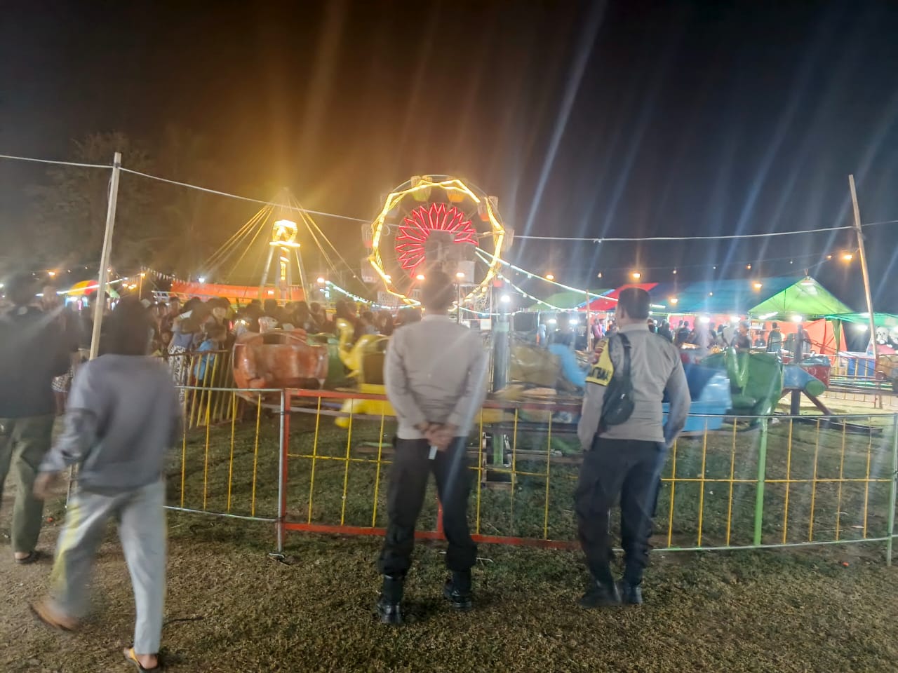 Usai dari lokasi turnamen, personel patroli melanjutkan kegiatan ke pasar malam yang berlangsung di lapangan Desa Waworada. Di sana, petugas menyampaikan imbauan kepada para pengunjung dan pengelola agar bersama-sama menjaga keamanan lingkungan dan waspada terhadap potensi tindak kejahatan.
