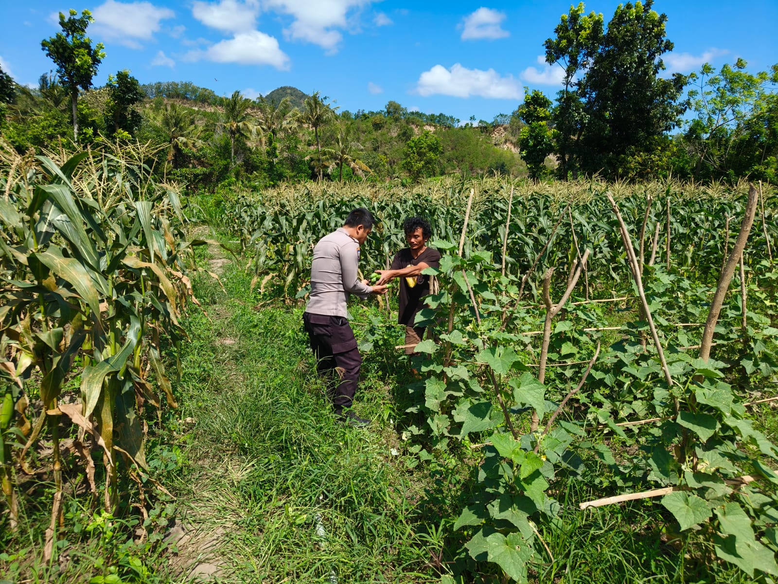 Kegiatan ini menyasar salah satu warga binaan yang aktif mengelola pekarangan rumahnya dengan menanam berbagai jenis sayur-sayuran. Dalam kesempatan tersebut, Bhabinkamtibmas tidak hanya melakukan pengecekan, tetapi juga memberikan semangat dan motivasi kepada warga agar terus memanfaatkan lahan pekarangan untuk bercocok tanam sebagai bagian dari upaya mendukung program ketahanan pangan di tingkat desa.
