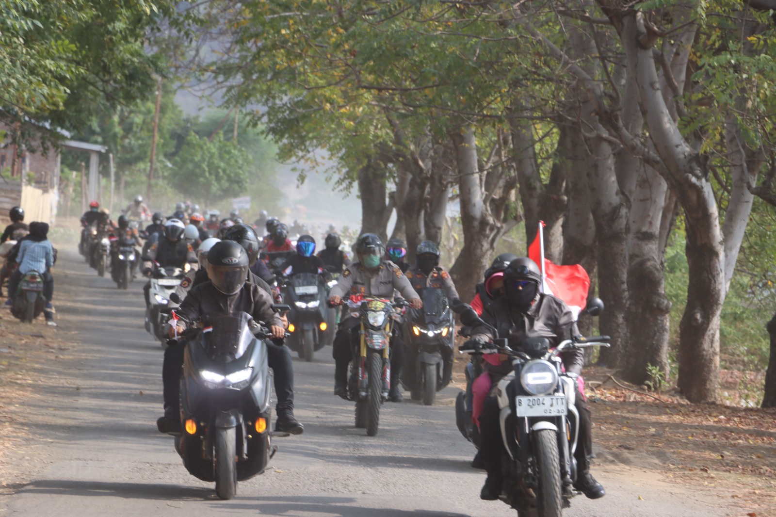Kapolres Bima Kota AKBP Didik Putra Kuncoro, S.I.K., M.Si memimpin langsung jalannya touring yang turut diikuti oleh Ketua Bhayangkari Cabang Bima Kota, Ny. Mira Didik, para Pejabat Utama (PJU), serta seluruh personel Polres Bima Kota. Tidak hanya internal Polres, kegiatan ini juga diramaikan oleh kehadiran komunitas bikers lokal yang turut berpartisipasi dalam nuansa kebersamaan dan nasionalisme.