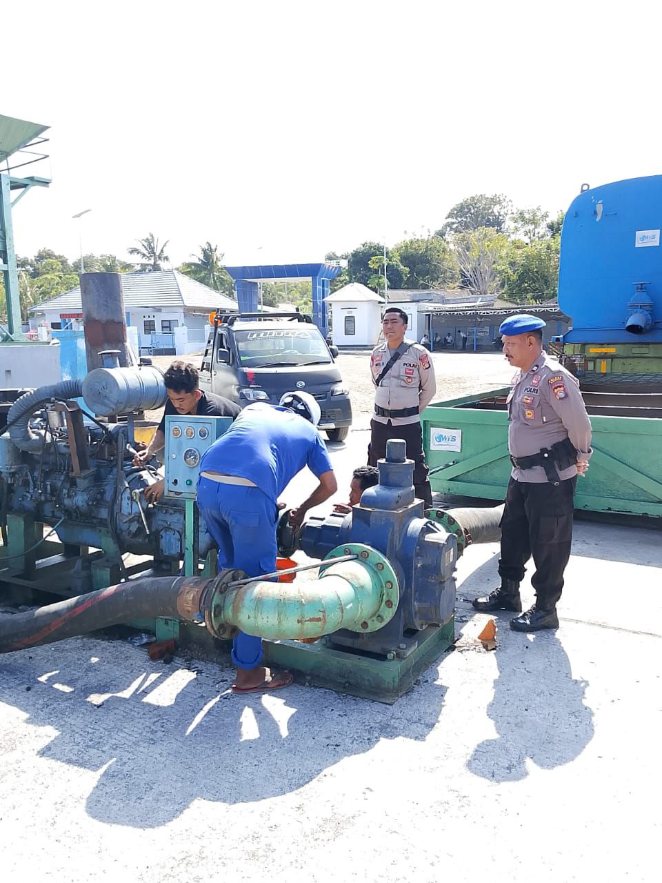Kemudian, pada pukul 10.50 WITA, personel melaksanakan pengamanan pengisian molases dari mobil tangki PT. Sukses Mantap Sejahtera (SMS) ke kapal cargo Mulia Karsa 5 tujuan Semarang, di Pelabuhan Syahbandar Calabai. Proses pengawasan dilakukan untuk menjamin kelancaran dan keamanan kegiatan bongkar muat.