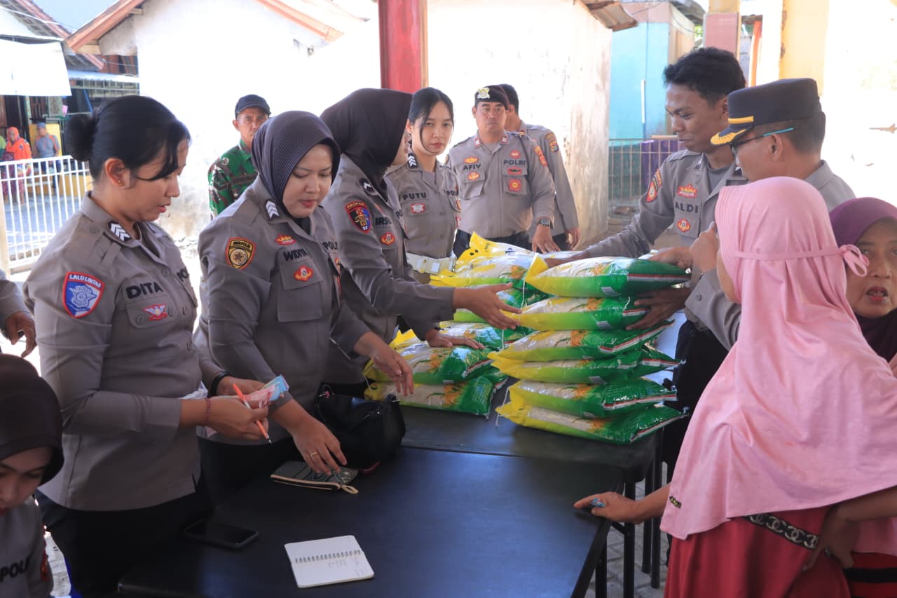 Kegiatan ini dipimpin langsung oleh Kapolres Sumbawa Barat, AKBP Zulkarnain, S.I.K., didampingi Wakapolres Kompol I Nyoman Adi Kurniawan, S.H., serta dihadiri oleh para pejabat utama, Kapolsek Poto Tano, dan anggota Polres Sumbawa Barat. Kehadiran mereka disambut antusias oleh warga, terbukti lebih dari 250 paket beras SPHP kemasan 5 kg ludes terjual.