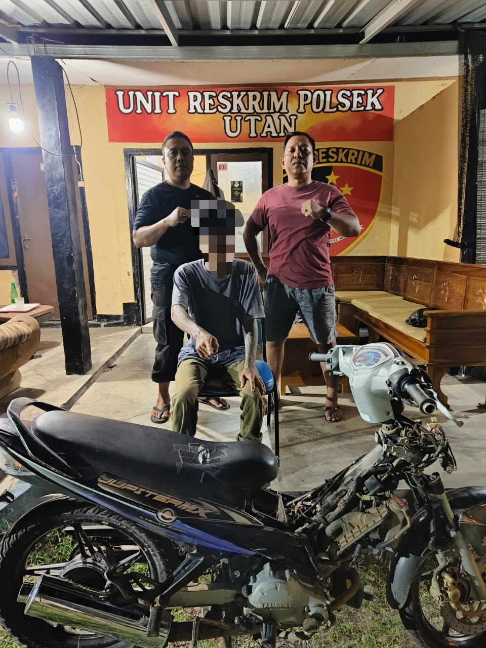 Saat ini, kedua terduga pelaku beserta barang bukti satu unit sepeda motor Yamaha Jupiter MX telah diamankan di Polsek Utan untuk menjalani proses hukum. Mereka akan dijerat dengan pasal-pasal terkait pencurian kendaraan bermotor. (MA)