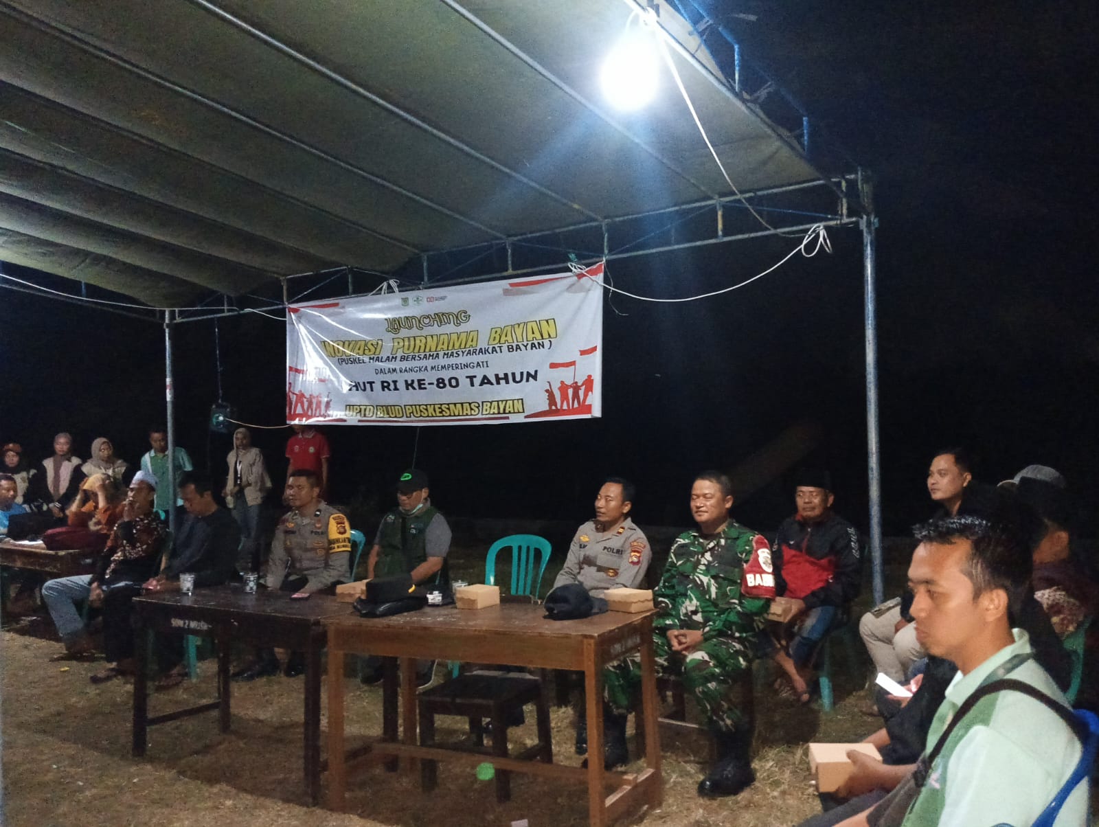 Lombok Utara – Kapolsek Bayan IPTU I Wayan Cipta Naya, S.H., M.I.Kom menghadiri kegiatan launching inovasi Purnama Bayan (Puskel Malam Bersama Masyarakat Bayan) yang diselenggarakan oleh Puskesmas Bayan, bertempat di Lapangan Pawang Kunyit II, Desa Mumbulsari, Kecamatan Bayan KLU, Sabtu malam, 9/8/2025.