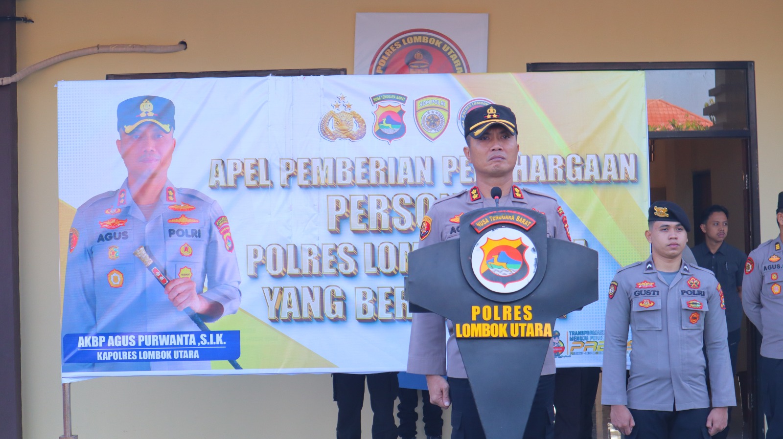 Dalam amanatnya, Kapolres Lombok Utara AKBP Agus Purwanta S.I.K. menyampaikan ucapan selamat dan apresiasi kepada seluruh penerima penghargaan. Ia berharap piagam tersebut menjadi motivasi untuk terus meningkatkan kinerja dan pelayanan kepada masyarakat.