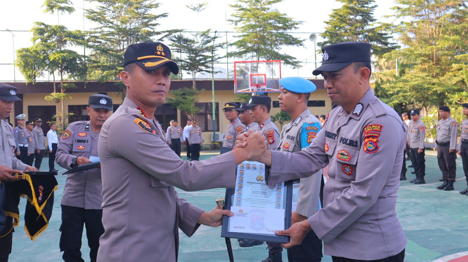 “Jadikan piagam penghargaan ini sebagai penyemangat untuk menjadi lebih baik lagi. Jangan hanya melihat tanda tangan pimpinan atau nilai yang diterima dari Kapolres, tetapi fokuslah pada semangat untuk melayani masyarakat dengan maksimal. Dengan demikian, kepercayaan masyarakat terhadap Polri akan semakin kuat,” tegas Kapolres.