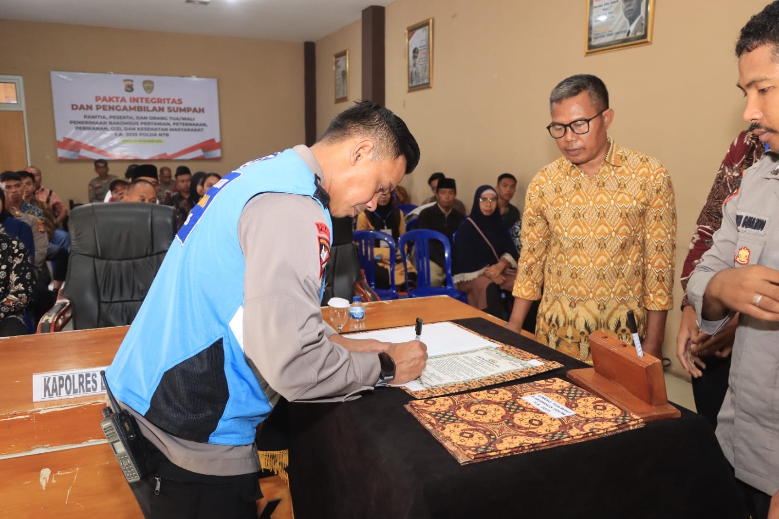 Lombok Tengah (NTB) – Kepolisian Resor Lombok Tengah menandatangani fakta integritas dan pengambilan sumpah kepada panitia, peserta dan orang tua/wali peserta seleksi penerimaan terapdu anggota Polri Bakomsus TA. 2024.