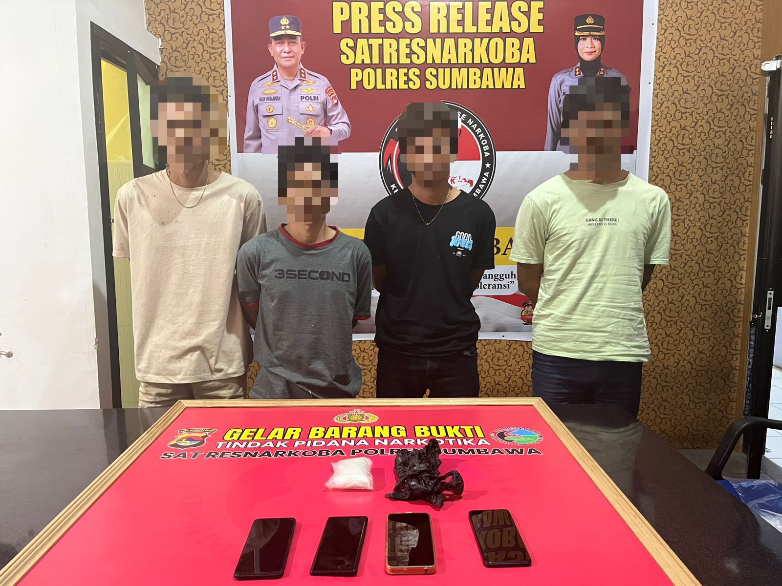 Sumbawa Besar, NTB — Satuan Reserse Narkoba (Satresnarkoba) Polres Sumbawa berhasil membongkar jaringan peredaran narkotika jenis sabu di wilayah Kecamatan Rhee. Dalam operasi yang dilakukan pada Jumat, 15 Agustus 2025, polisi mengamankan empat orang terduga pelaku dengan barang bukti 90,5 gram sabu.