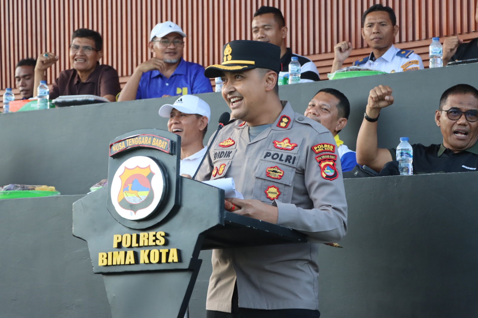 Kapolres Bima Kota AKBP Didik Putra Kuncoro, S.I.K., M.Si., dalam sambutannya menyampaikan bahwa turnamen ini bukan sekadar ajang kompetisi olahraga, melainkan sarana mempererat silaturahmi, menumbuhkan semangat persatuan, dan memperkokoh kebersamaan di tengah masyarakat.