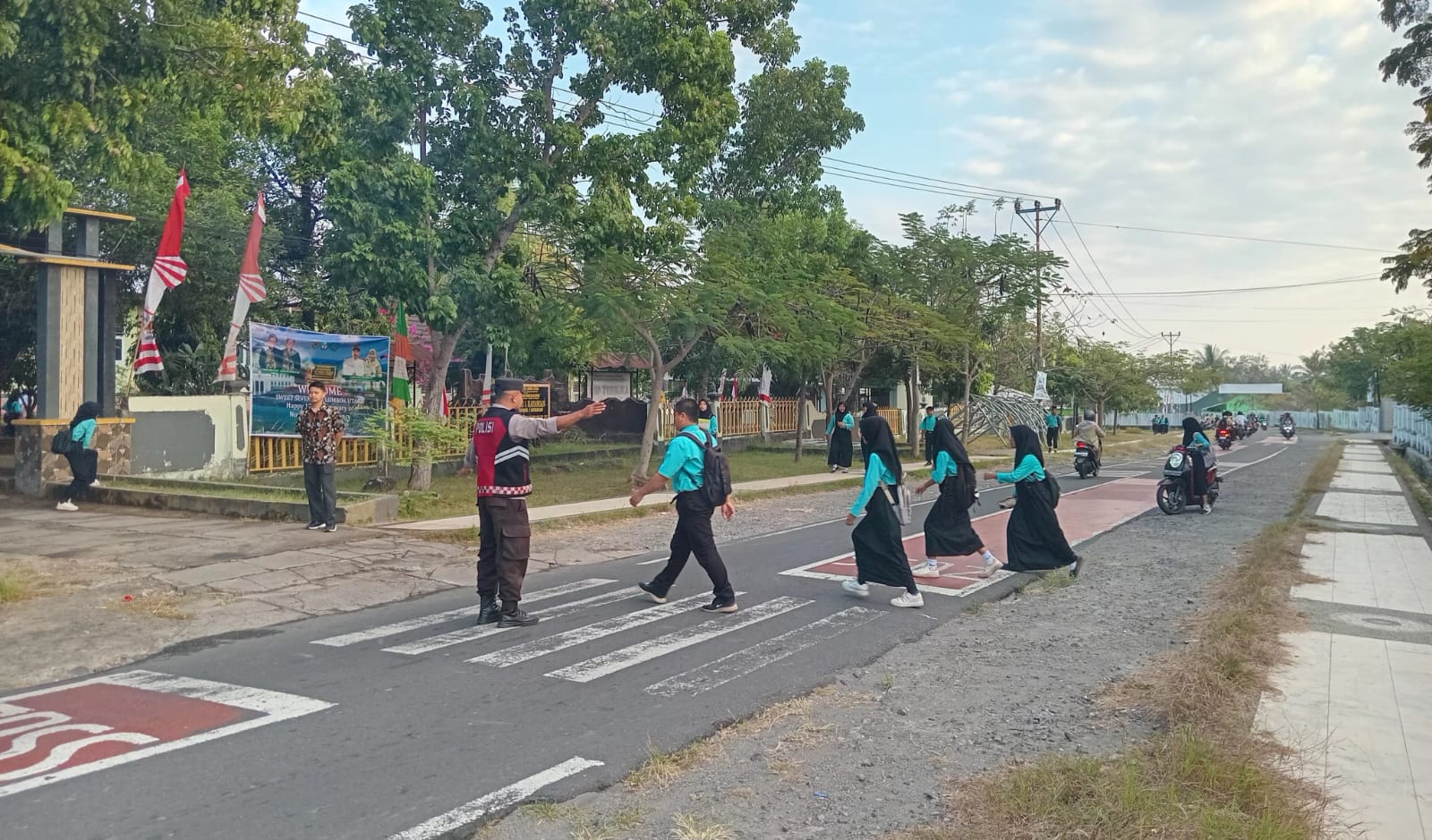 Dalam kegiatan tersebut, personel Polsek Khayangan sekaligus memberikan imbauan kepada para pelajar agar selalu menggunakan helm saat berkendara maupun dibonceng, serta senantiasa mematuhi peraturan lalu lintas demi keselamatan bersama.