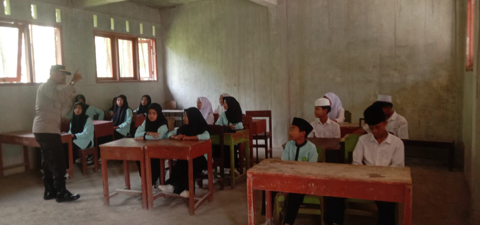 Polres Lombok Utara melalui Satuan Binmas melaksanakan kegiatan penyuluhan dan sosialisasi kepada para santri Pondok Pesantren Babussalam, Desa Segara Katon, Kecamatan Gangga, Senin (1/9/2025).