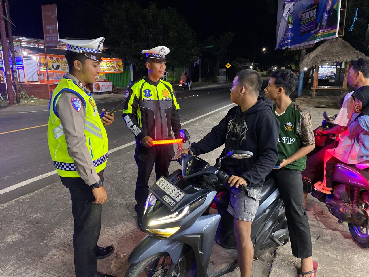 Kami berharap masyarakat dapat lebih disiplin dalam berlalu lintas, menggunakan helm standar, tidak melawan arus, serta menghindari penggunaan knalpot bising yang meresahkan. Patroli Blue Light ini rutin dilaksanakan sebagai bentuk kehadiran Polri untuk memberikan rasa aman dan nyaman bagi masyarakat di malam hari,” ujar AKP Belly Rizaldi.