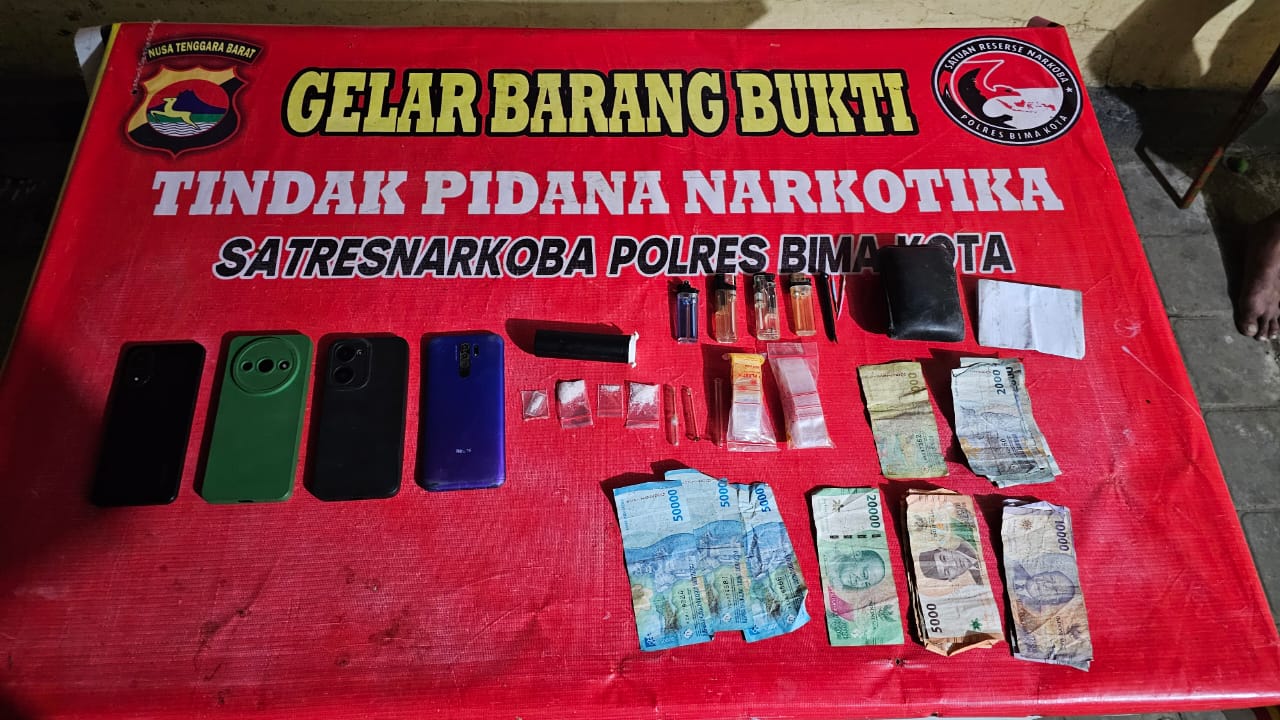 Dari tangan para terduga, polisi mengamankan barang bukti berupa 4 lembar plastik klip berisi serbuk kristal diduga sabu dengan berat kotor 2,53 gram dan berat bersih 1,73 gram, 2 lembar plastik klip kosong, 3 tabung kaca, 5 buah korek api gas, 1 tabung plastik warna hitam, 5 kartu ATM, serta uang tunai Rp263.000.