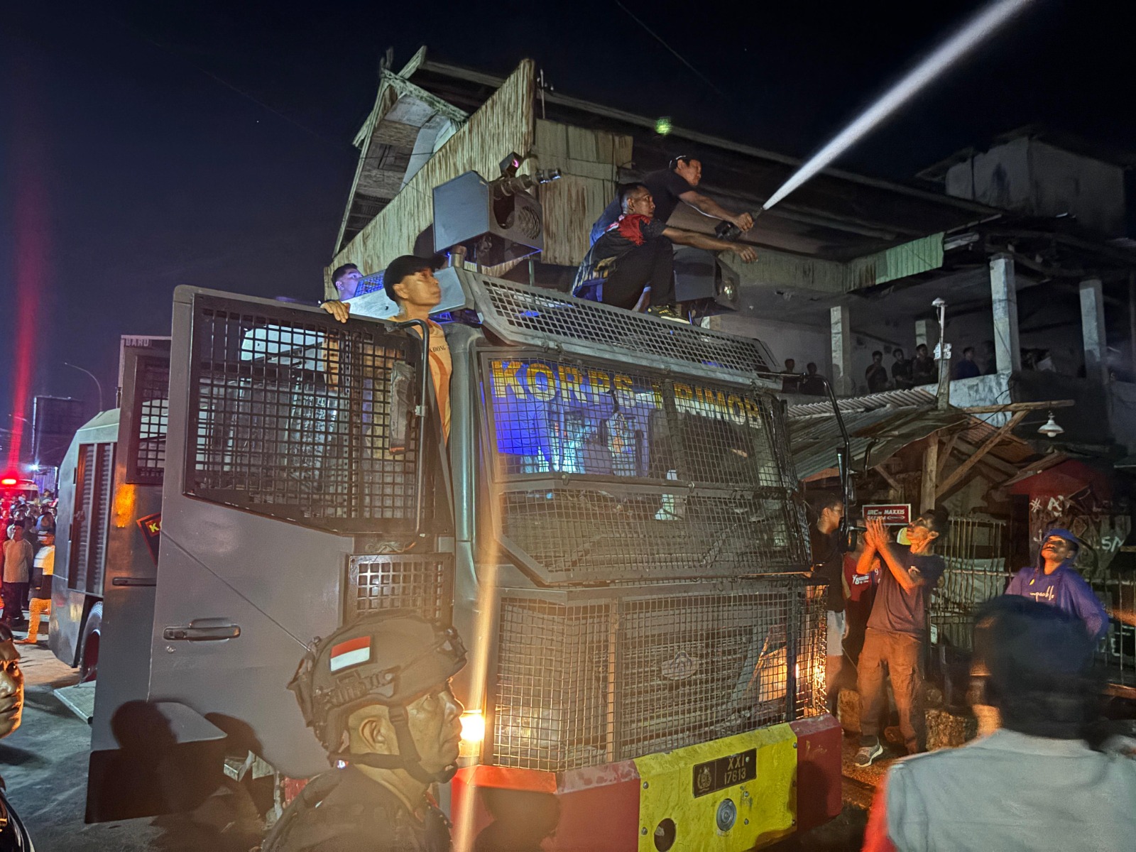 Kapolres Bima Kota AKBP Didik Putra Kuncoro, S.I.K., M.Si., melalui Kasi Humas Ipda Baiq Fitria Ningsih, menyampaikan bahwa proses pemadaman api dilakukan dengan mengerahkan unit Armored Water Cannon (AWC) milik Yon C Pelopor Sat Brimobda NTB bersama Damkar Kota Bima, yang juga mendapat bantuan dari warga sekitar.