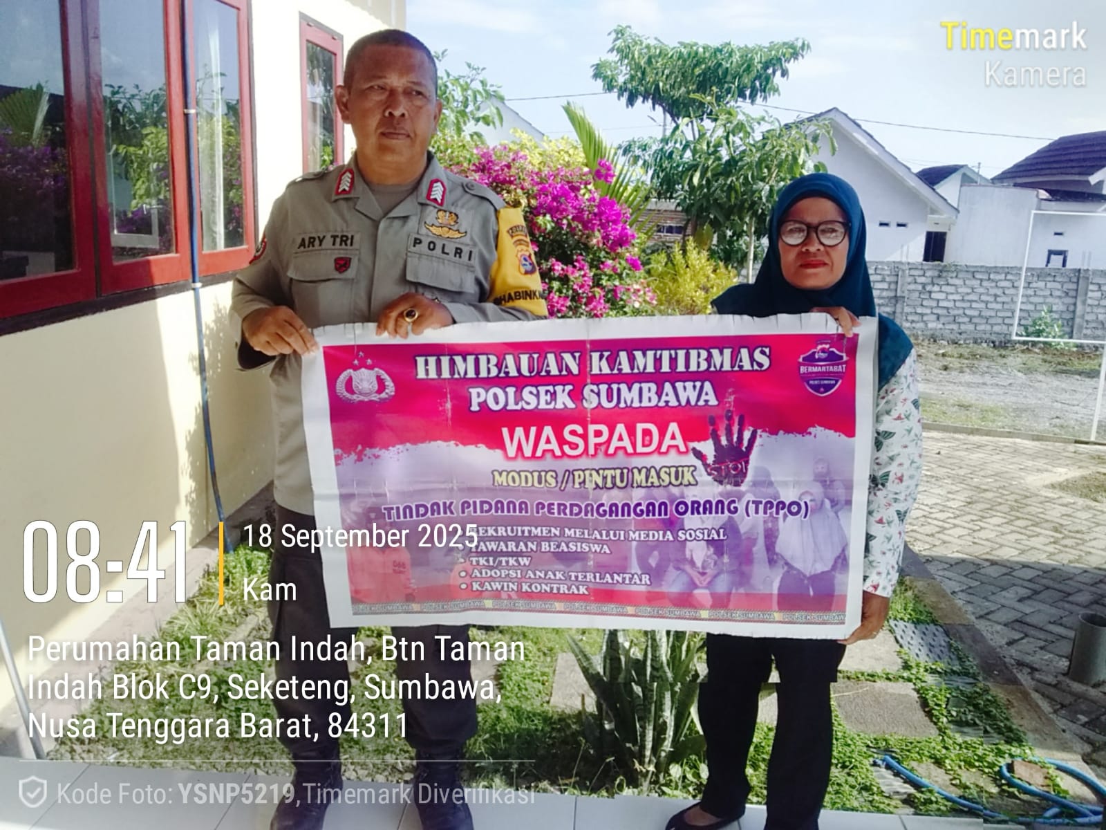 Sumbawa Besar, NTB — Sebagai upaya preventif untuk mencegah terjadinya Tindak Pidana Perdagangan Orang (TPPO), Polsek Sumbawa menggelar kegiatan sosialisasi di wilayah hukumnya. Kegiatan ini berlangsung pada Kamis, 18 September 2025, mulai pukul 08.40 WITA, dengan sasaran utama masyarakat umum.