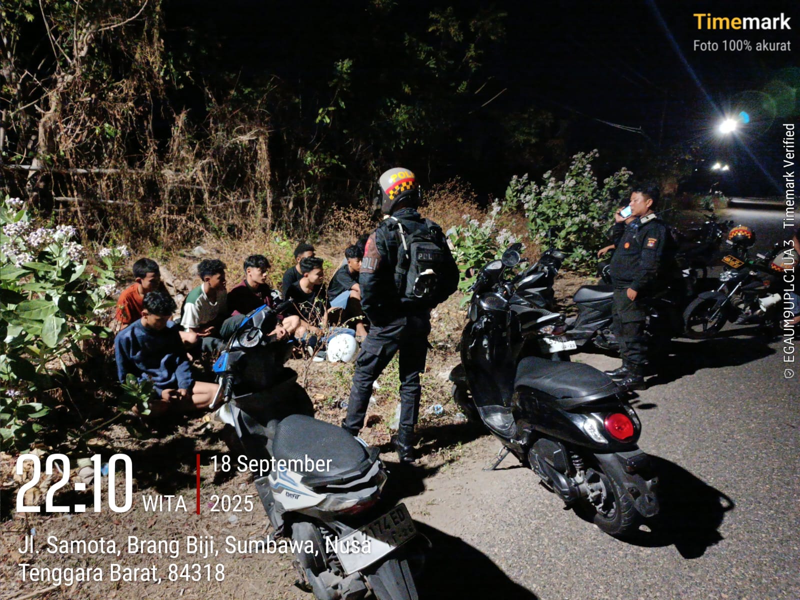 Sumbawa Besar, NTB — Tim patroli Satsamapta Polres Sumbawa berhasil membubarkan dan mengamankan sekelompok pemuda yang diduga terlibat dalam aksi balap liar di kawasan Samota, Kecamatan Sumbawa, pada Kamis malam (18/9/2025).
