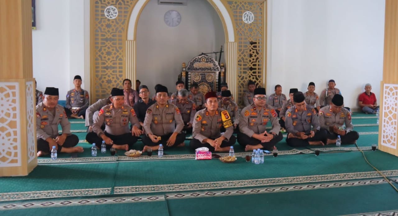 – Personel yang beragama Islam melaksanakan kegiatan di Masjid Bhayangkara Polres Lombok Utara.