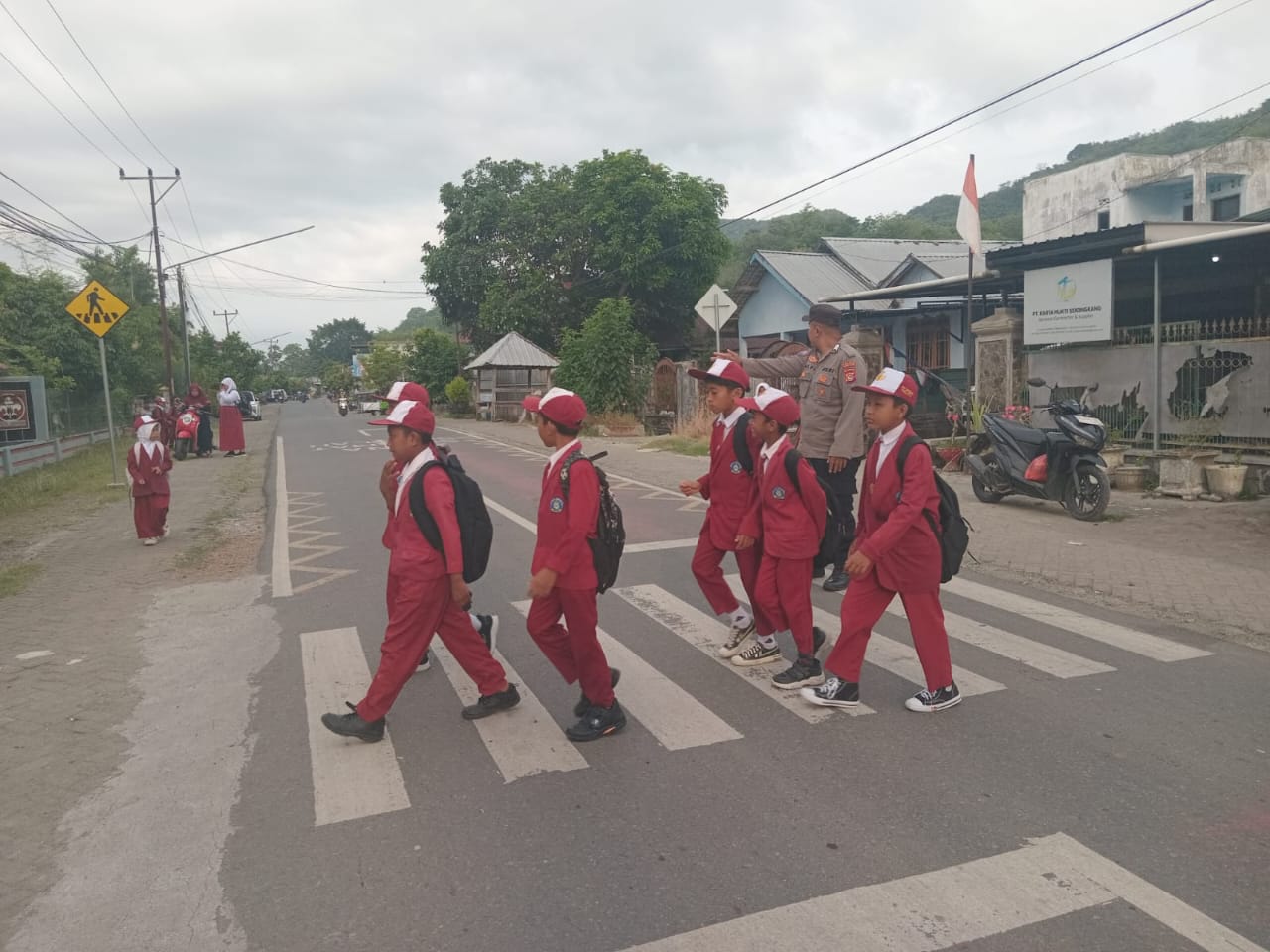 Sumbawa Barat — Dalam rangka menjaga keselamatan para pelajar di pagi hari, personel Polsek Sekongkang Polres Sumbawa Barat melaksanakan kegiatan pengaturan lalu lintas dan penyebrangan anak sekolah di depan SDN 1 Sekongkang dan SMAN 1 Sekongkang wilayah Kecamatan Sekongkang kabupaten sumbawa Barat, Senin (27/10/2025).