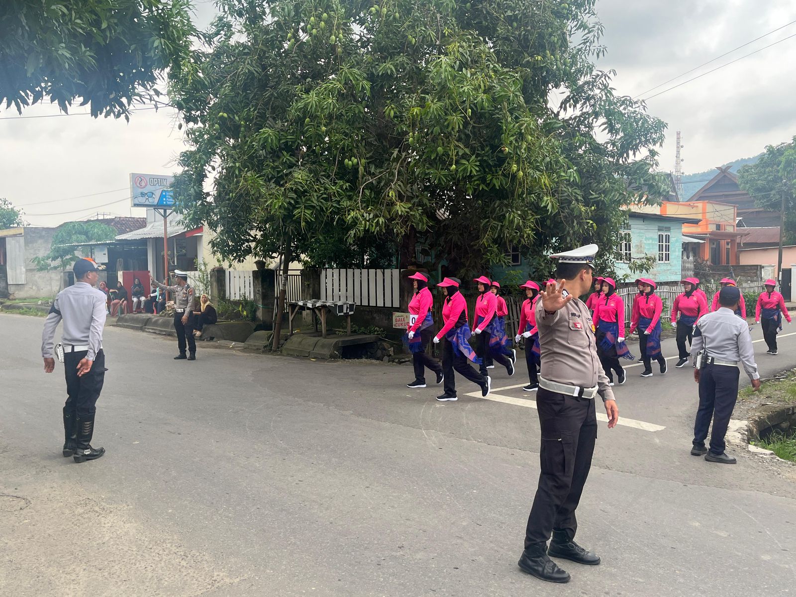 Sumbawa Barat — Personel Polres Sumbawa Barat melaksanakan kegiatan pengamanan Lomba Gerak Jalan Tepat Waktu tingkat SKPD, Instansi Vertikal, TNI/POLRI dan Umum yang digelar dalam rangka memeriahkan Hari Lahir (Harlah) Kabupaten Sumbawa Barat ke-22 tahun 2025, pada senin (27/10/2025).