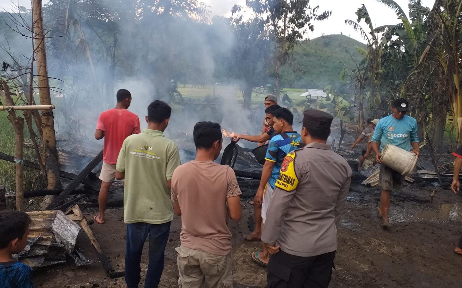 Personel Polsek Sanggar yang mendapatkan Informasi itu langsung bergerak menuju TKP dan bersama warga sekitar berusaha melakukan pemadaman dengan alat seadanya namun api yang sudah menjalar tidak dapat dipadamkan.