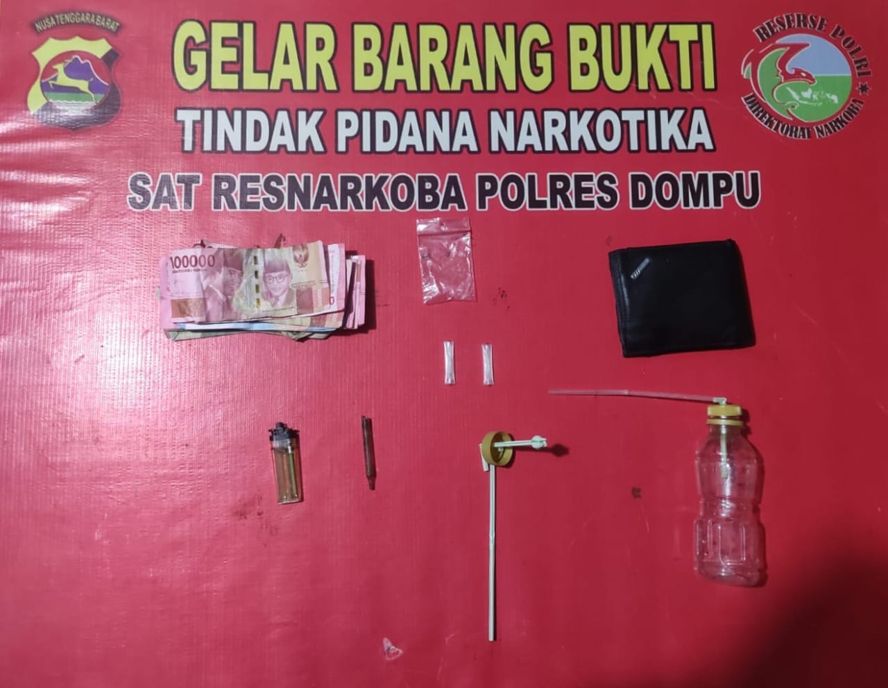 Tim Opsnal Satresnarkoba Polres Dompu menangkap seorang terduga pengedar narkotika, EAP (26), pada Kamis malam, 21 November 2024, di Jalan Raya Dusun Jati, Desa Lepadi, Kecamatan Dompu.
