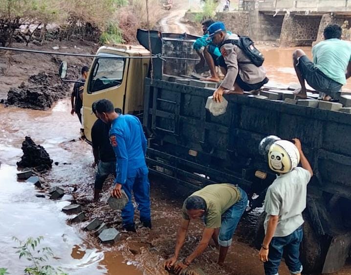Kesigapan dan kerja sama antara personel Sat Polairud dan masyarakat, truk akhirnya berhasil dievakuasi, dan arus lalu lintas di jalur alternatif Jembatan So Nampa kembali normal.