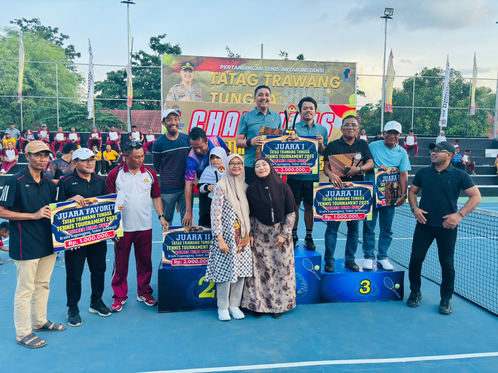 Kota Bima, NTB (16 November 2025) – Team Tenis Polres Bima Kota berhasil meraih Juara 1 dalam ajang Turnamen Tenis Tatag Trawang Tungga Antar Instansi Polres Bima Kota Tahun 2025, setelah memenangkan pertandingan final melawan tim BPKAD Kota Bima. Kegiatan final sekaligus penutupan turnamen berlangsung pada Minggu, 16 November 2025, pukul 08.00 Wita di Lapangan Tenis Tatag Trawang Tungga Polres Bima Kota.