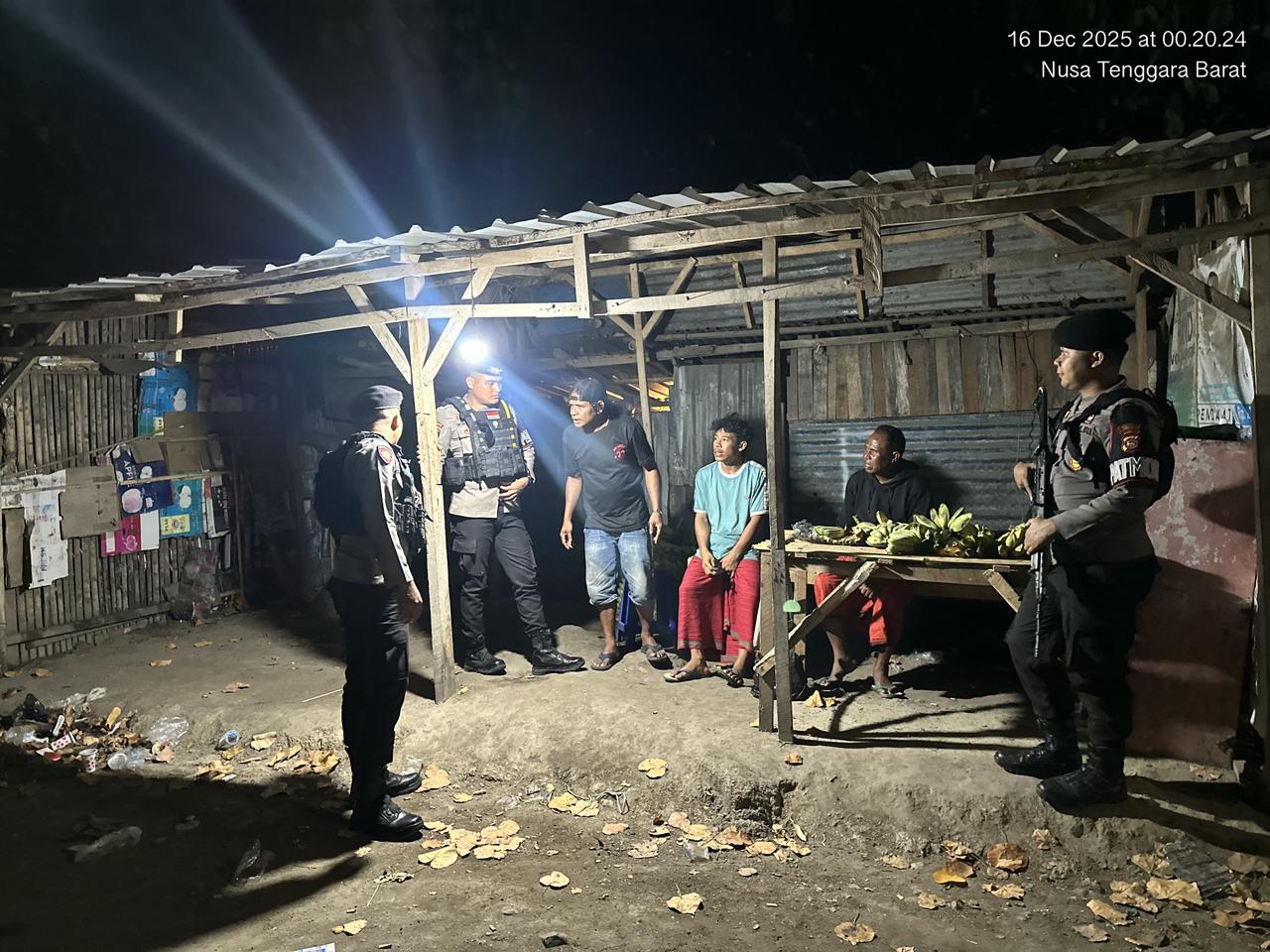 Patroli dialogis ini dilaksanakan di wilayah Kelurahan Dara dan Pasar Amahami, Kota Bima, dengan sasaran masyarakat yang masih beraktivitas pada malam hingga dini hari.
