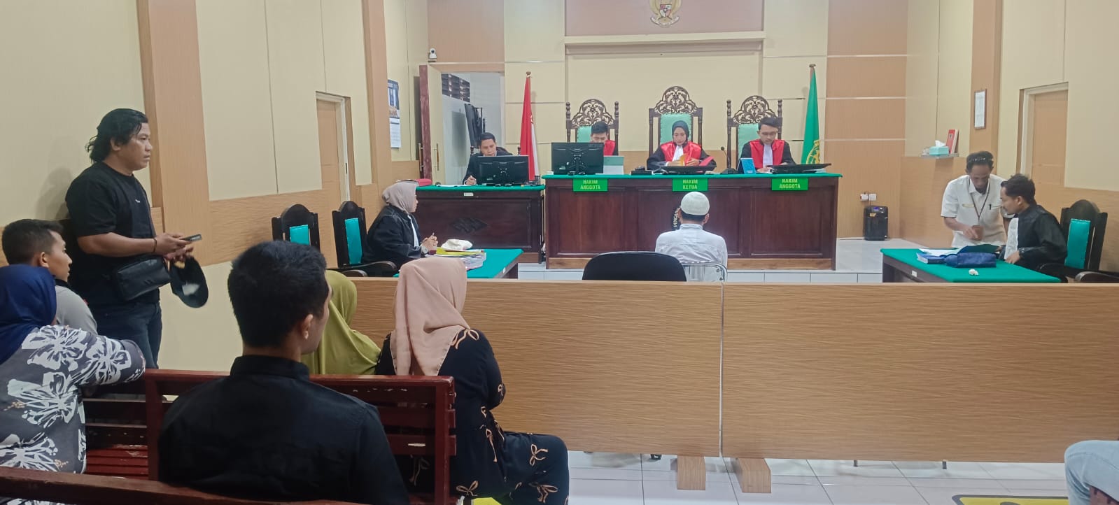 Sidang dipimpin oleh Hakim Ketua FAQHINA FIDDIN, S.H., M.H., didampingi Hakim Anggota MARIO SODIKIM, S.H. dan PAKSI ERLANGGA, S.H.. Penuntut Umum menghadirkan lima orang saksi, yakni Tamrujin alias Jeki, Suhartin, Gito, Andi Karisma alias Andi, dan Ades, yang diperiksa secara bergantian oleh Majelis Hakim.
