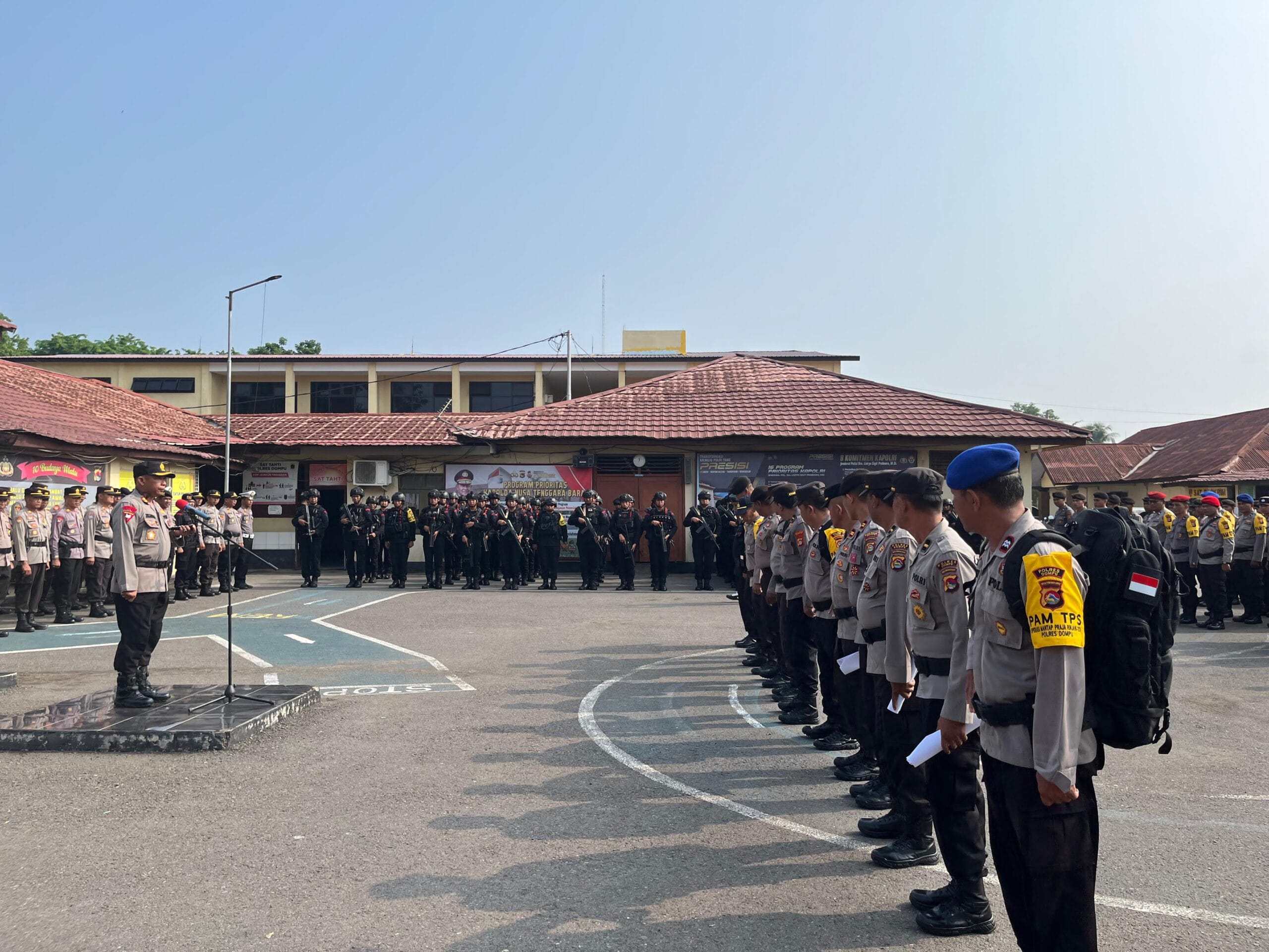 Dalam rangka memastikan keamanan dan kelancaran pelaksanaan Pilkada Serentak 2024 di Kabupaten Dompu, Kapolres Dompu AKBP Zulkarnain, S.I.K, memimpin apel gelar pasukan persiapan pengamanan Pilkada. Apel tersebut berlangsung pada Kamis pagi, pukul 08.00 WITA, di halaman Mapolres Dompu, dengan diikuti sekitar 800 personel gabungan dari berbagai satuan.