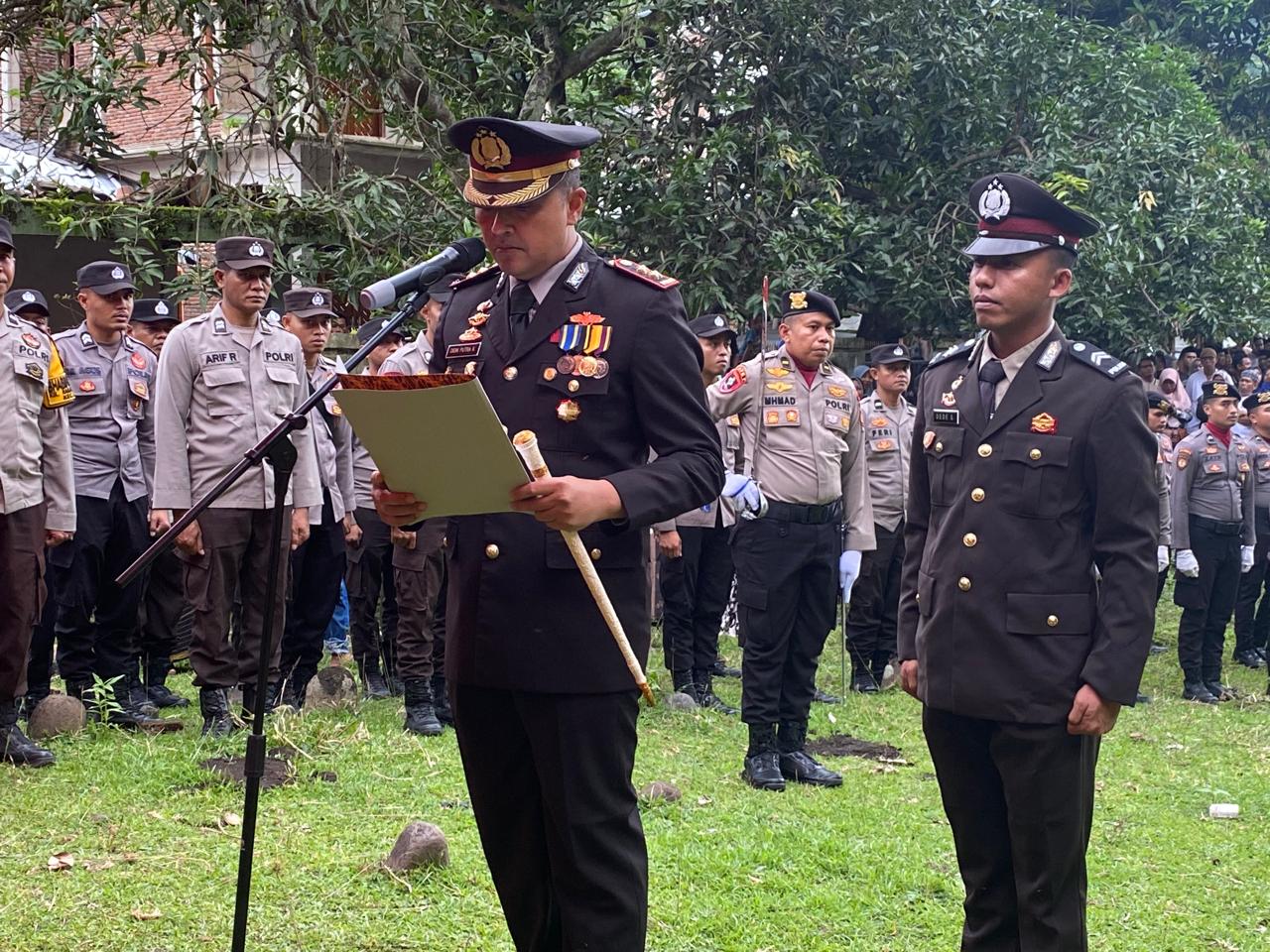 Upacara pemakaman dipimpin langsung oleh Kapolres Bima Kota AKBP Didik Putra Kuncoro, S.I.K., M.Si., dan dihadiri oleh seluruh Pejabat Utama Polres Bima Kota, Kapolsek jajaran, personel Polres Bima Kota, ASN Polres Bima Kota, serta Ketua Bhayangkari Cabang Bima Kota beserta pengurus.
