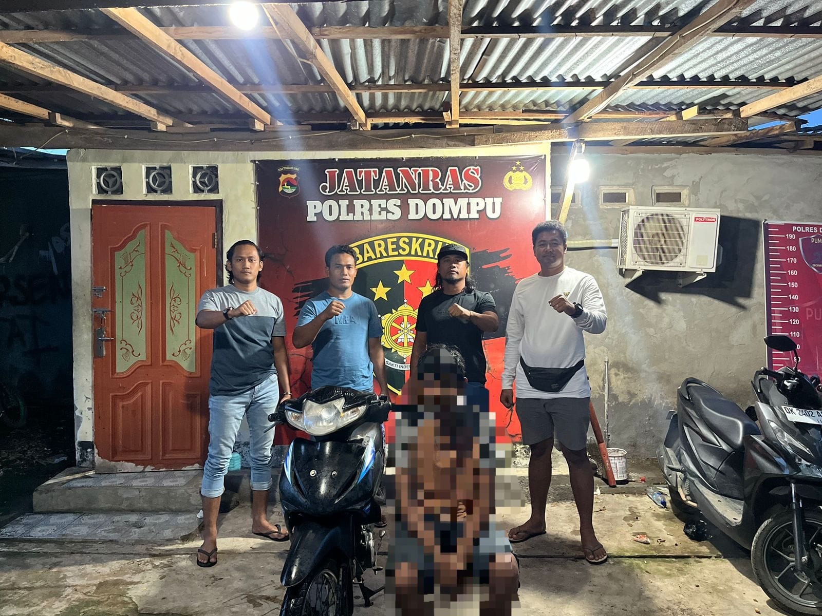 Menindaklanjuti laporan tersebut, Tim Jatanras Polres Dompu segera melakukan penyelidikan dengan memeriksa sejumlah saksi. Dari keterangan saksi, diperoleh informasi bahwa terduga pelaku sempat berada di sekitar rumah korban serta menawarkan sepeda motor tersebut untuk digadaikan. Berdasarkan hasil penyelidikan, petugas berhasil mengetahui keberadaan terduga pelaku dan langsung melakukan penangkapan.