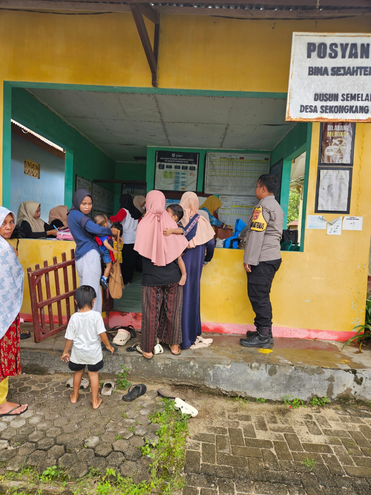 Kegiatan yang berlangsung sejak pukul 09.30 Wita tersebut dilaksanakan di Posyandu Bina Sejahtera 1 dan diikuti oleh para ibu bersama balita. Kehadiran Bhabinkamtibmas bertujuan untuk memastikan kegiatan pelayanan kesehatan masyarakat berjalan dengan aman, tertib, dan lancar.