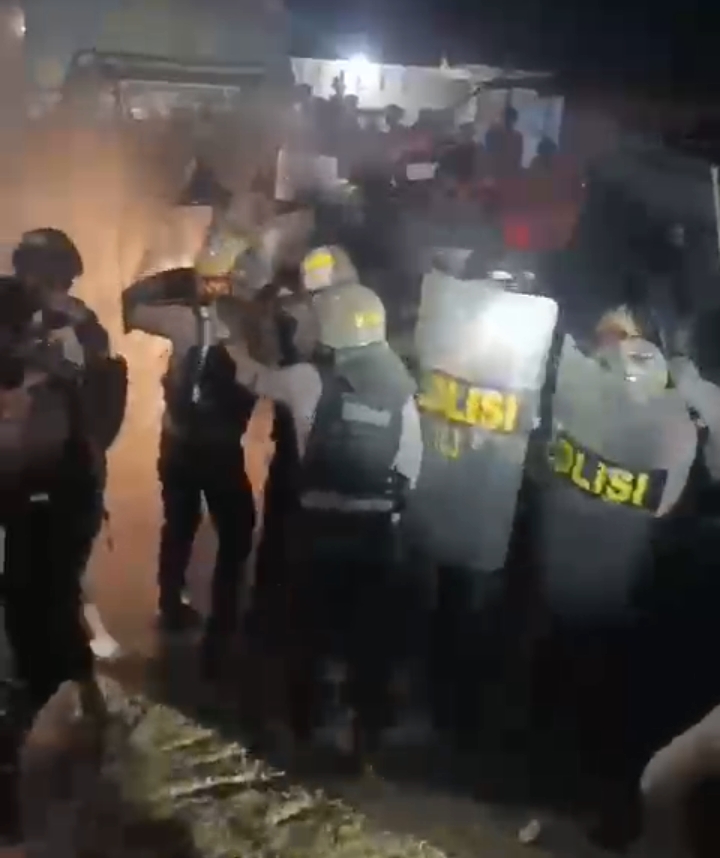 Namun, upaya tersebut tidak berjalan mulus. Saat petugas mencoba mengevakuasi pelaku, sejumlah warga justru melakukan perlawanan dengan melempar batu ke arah aparat. Di tengah hujan lemparan, petugas tetap bertahan menggunakan tameng untuk melindungi diri. Ketegangan semakin meningkat ketika massa juga merusak dan membakar sepeda motor yang diduga digunakan pelaku. Situasi pun nyaris lepas kendali sebelum akhirnya langkah tegas diambil. Kondisi tersebut menggambarkan betapa cepatnya eskalasi terjadi di lapangan.