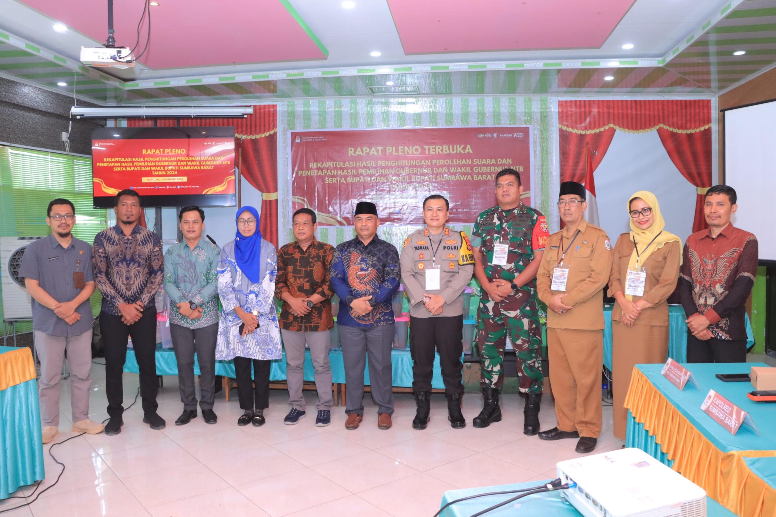 Pembukaan Rapat Pleno Terbuka Tingkat Kabupaten tersebut dihadiri oleh Kapolres Sumbawa Barat, AKBP Yasmara Harahap, S.I.K., Dandim 1628/Sumbawa Barat, Letkol Inf. Andri Karsa, S.Sos., M.Han., Ketua KPU Sumbawa Barat, Herman Jayadi, S.A.P., Ketua Bawaslu Sumbawa Barat, Haeruddin, S.T., Kabid Kesbangpol Kabupaten Sumbawa Barat, Titin Y., perwakilan PPK se-Kabupaten Sumbawa Barat, serta para saksi paslon pada Pilkada serentak 2024.
