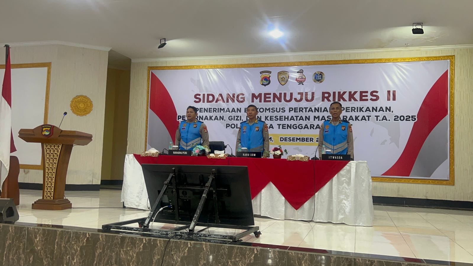 Mataram — Proses seleksi Bakomsus (Bintara Kompetensi Khusus) bidang pertanian, peternakan, perikanan, gizi, dan kesehatan masyarakat Tahun Anggaran 2025 terus berlanjut di Polda NTB. Bertempat di Gedung Sasana Dharma Polda NTB, Selasa (3/12/2025) pukul 15.00 Wita, Sidang menuju Pemeriksaan Kesehatan (Rikkes) II berlangsung dengan dihadiri para peserta, pengawas internal dan eksternal, serta panitia seleksi.