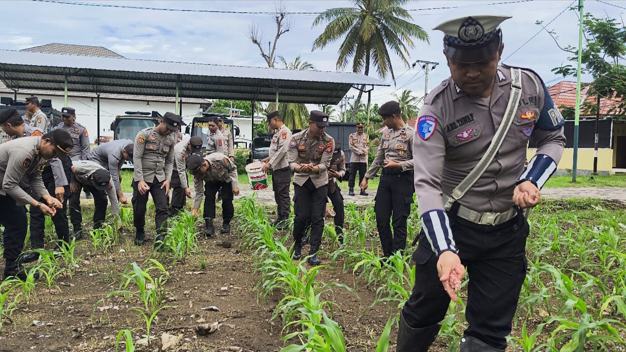 Lombok Utara – Dalam upaya mendukung ketahanan pangan nasional, Polres Lombok Utara bekerja sama dengan Dinas Pertanian Kabupaten Lombok Utara kembali melaksanakan kegiatan pemupukan dan pengemburan tanah, tanaman jagung melalui Program Asta Cita Ketahanan Pangan, bertempat di Polres Lombok Utara Rabu (18/12).