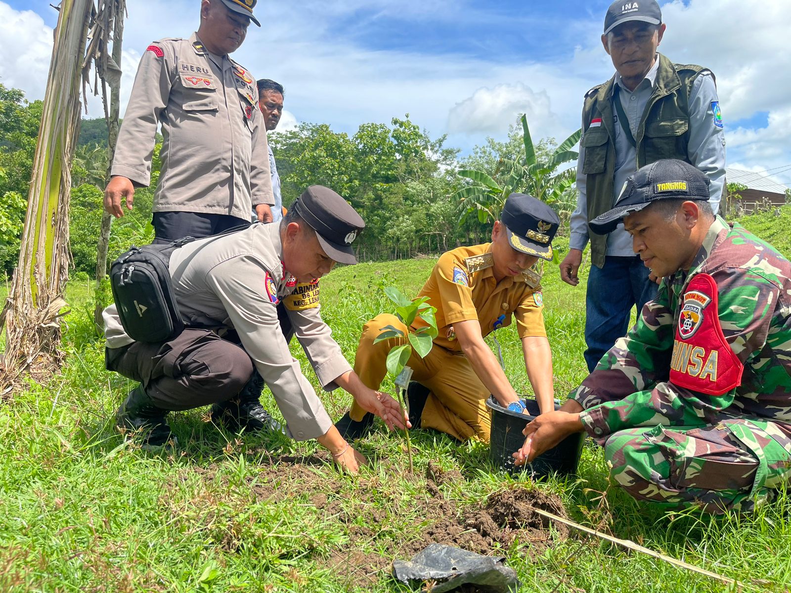 Sumbawa Besar-NTB, Polsubsektor Lantung jajaran Polres Sumbawa mengikuti kegiatan penanaman pohon dalam rangka HUT NTB ke 66 dan Hari Menanam Pohon Indonesia (HMPI) berlokasi di Desa Ledang Kecamatan Lenangguar, Senin tanggal 23 Desember 2024 sekitar pukul 09.45 wita.