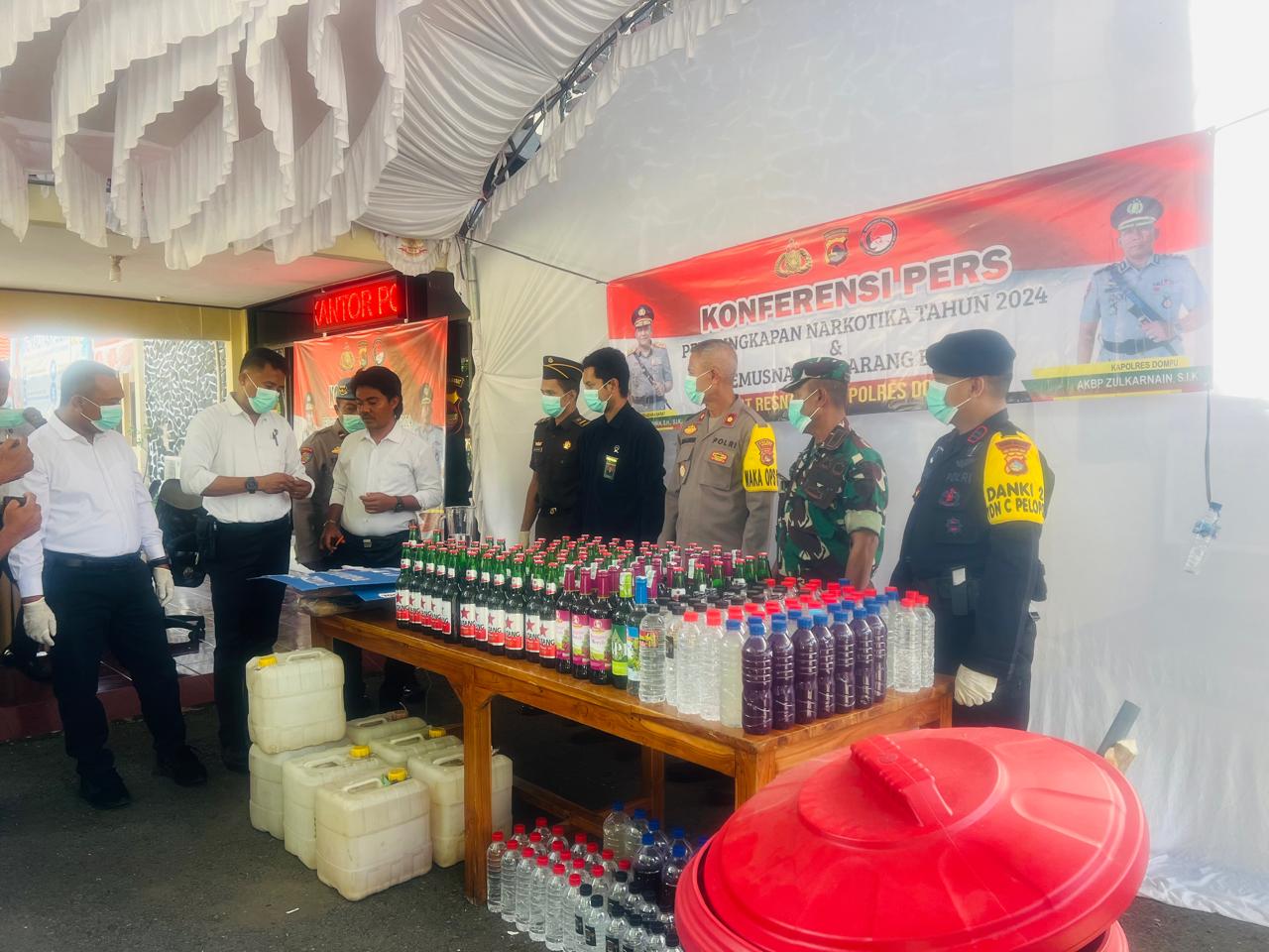 Polres Dompu terus menunjukkan komitmennya dalam memerangi peredaran narkotika di wilayah Kabupaten Dompu. Pada Senin, 23 Desember 2024, bertempat di halaman Polres Dompu, dilakukan konferensi pers pengungkapan tindak pidana narkotika sepanjang tahun 2024, yang dirangkaikan dengan pemusnahan barang bukti narkotika dan minuman keras hasil pengungkapan Satuan Reserse Narkoba (Satresnarkoba).