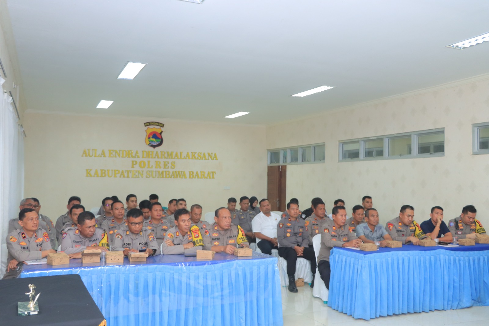 Kapolres Sumbawa Barat, AKBP Yasmara Harahap, S.I.K., memimpin langsung kegiatan tersebut dihadiri oleh Wakapolres Sumbawa Barat, para pejabat utama Polres Sumbawa Barat, seluruh Kapolsek jajaran, serta para Paurmin, Kaurmin, dan Kasium.