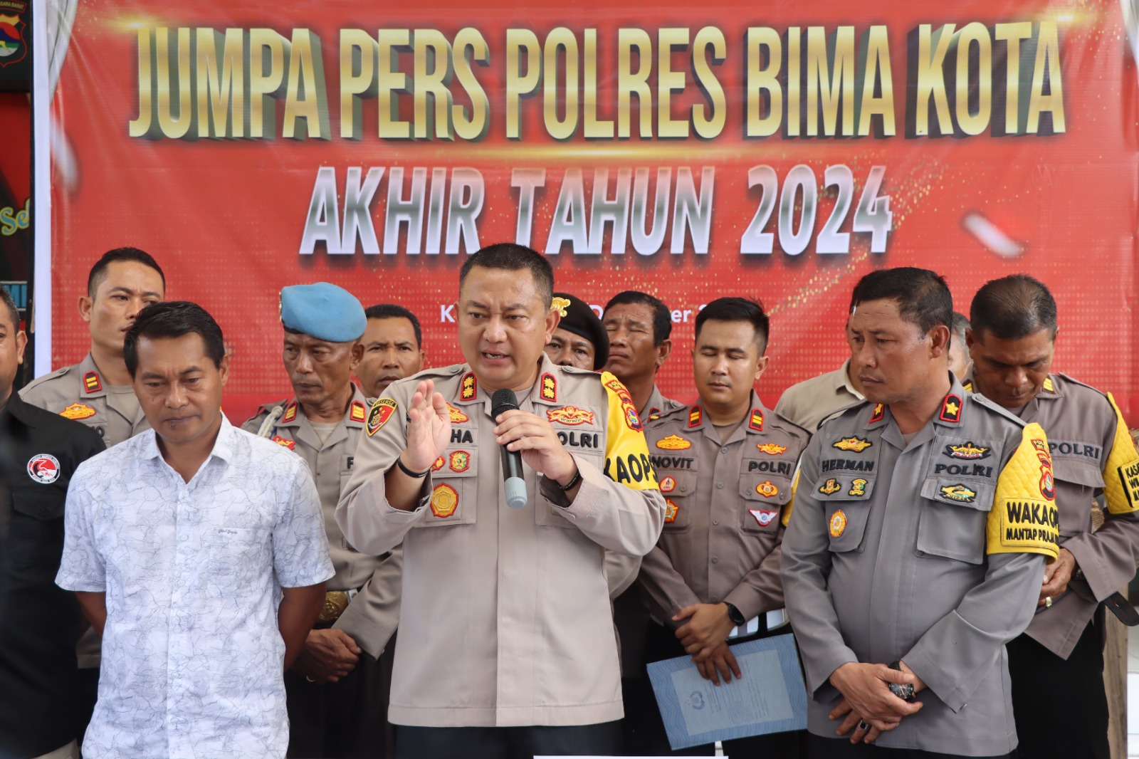 Kota Bima, NTB (28/12) – Kasus tindak kriminal di wilayah hukum Polres Bima Kota sepanjang tahun 2024 menunjukkan tren penurunan dibandingkan tahun sebelumnya. Hal ini diungkapkan oleh Kapolres Bima Kota, AKBP Yudha Pranata, saat konferensi pers di Mako Polres Bima Kota pada Sabtu, 28 Desember 2024.