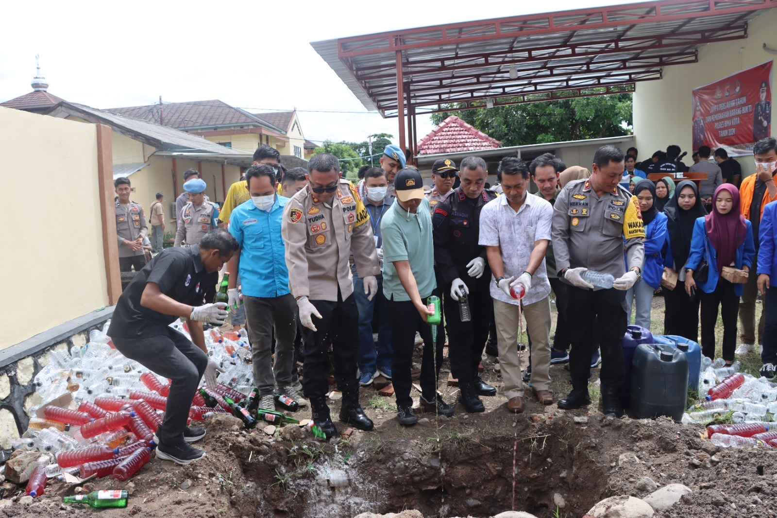 Kapolres Bima Kota, AKBP Yudha Pranata, memimpin langsung pemusnahan tersebut. Acara ini turut dihadiri Waka Polres Kompol Herman, para pejabat utama Polres Bima Kota, unsur BNNK Bima, BPOM, BEM Bima, LSM, tokoh masyarakat, dan tokoh agama.